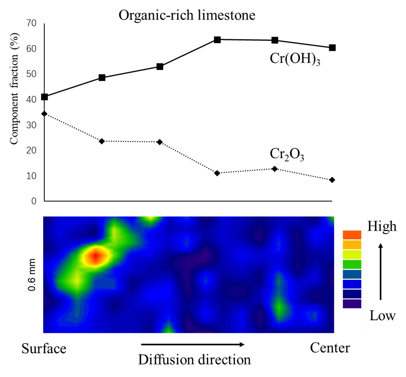 六价铬在富含有机质灰岩内部的扩散-反应过程以及化学形态变化